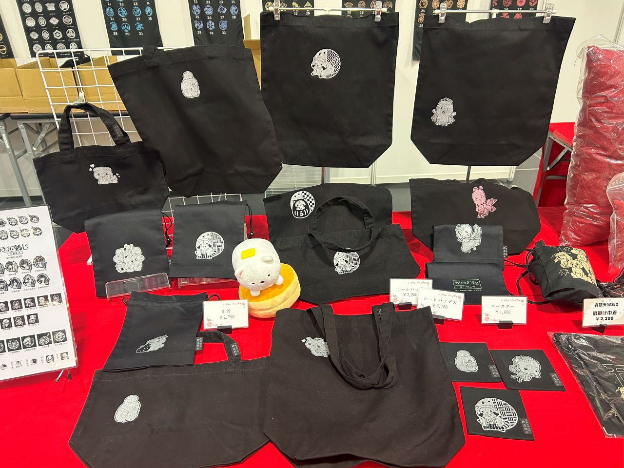 京まふ2025ではアイテムをコースター1650円、トートバッグ小2200円、巾着・大トート2750円から選択できた