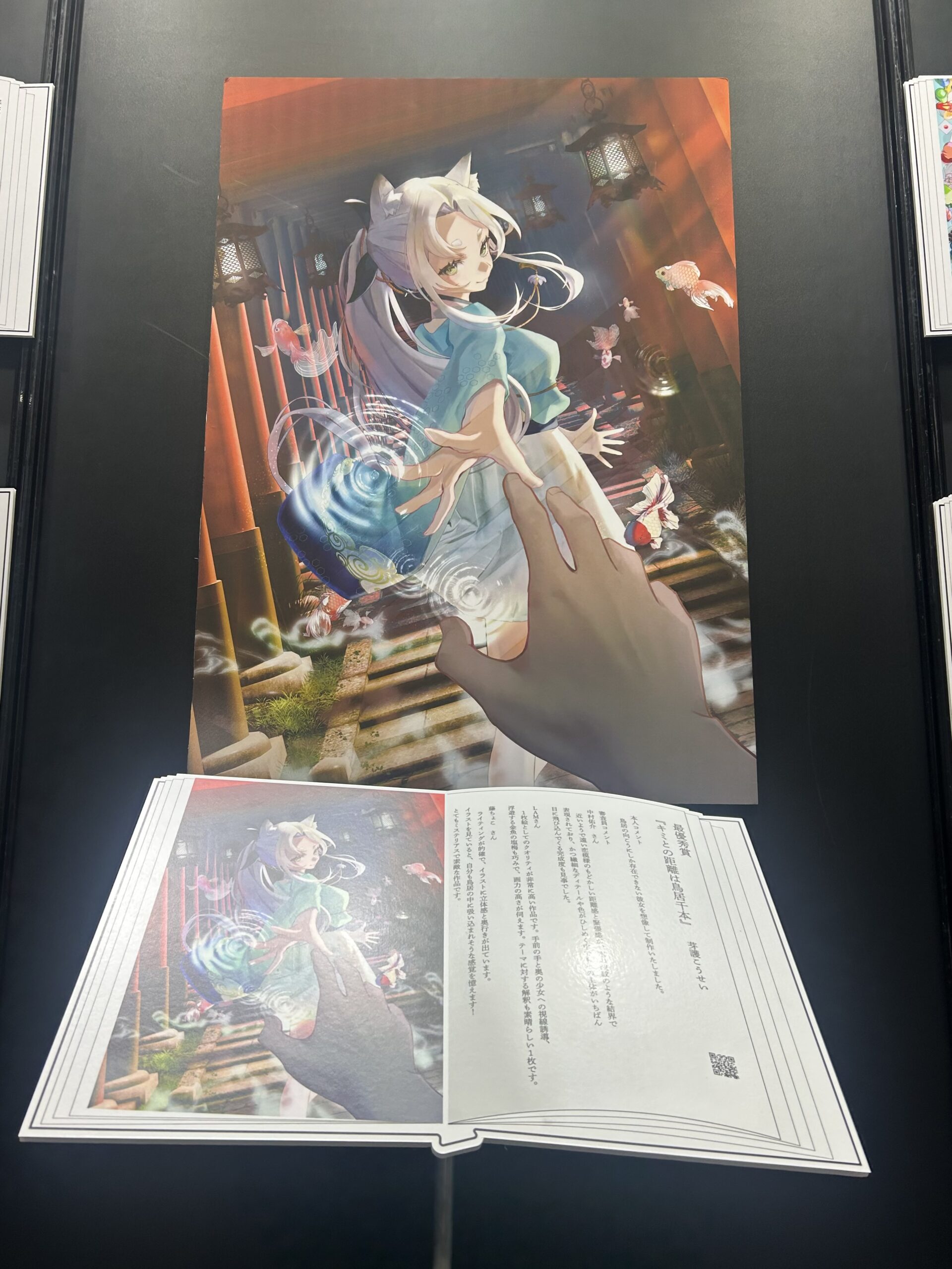 当日はクリエイター支援を呼びかけるクラウドファンディングも呼びかけられ、リターン品として受け取れる限定アイテムの展示もされていました(クラウドファンディングは2025年9月30日(火)23:00にて終了)。