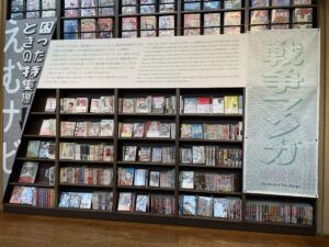 マンガミュージアム1階には本展で紹介しきれなかった戦争マンガがなんと214タイトル(341冊)展示されていました。