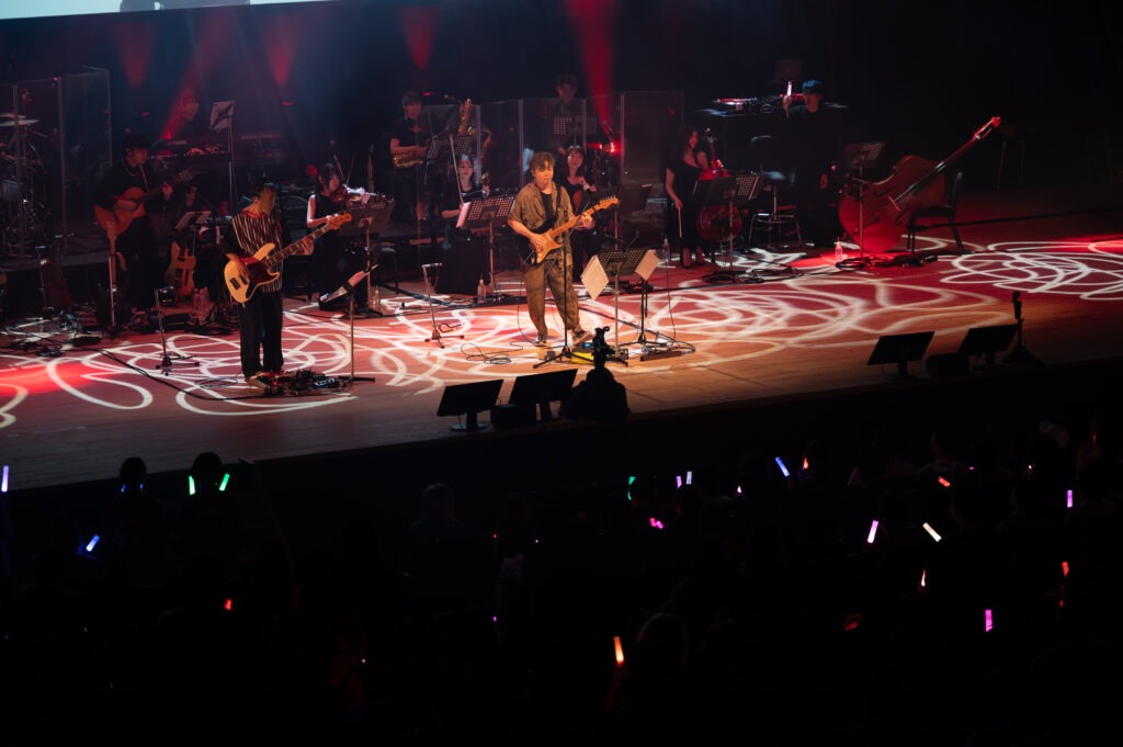 続く「呪術師・伏黒恵」では伏黒の映像が重なり、三曲目「呪術師・釘崎野薔薇」ではクラシックギターの響きとともに、野薔薇らしい情熱的なムードが会場を赤く染めます。