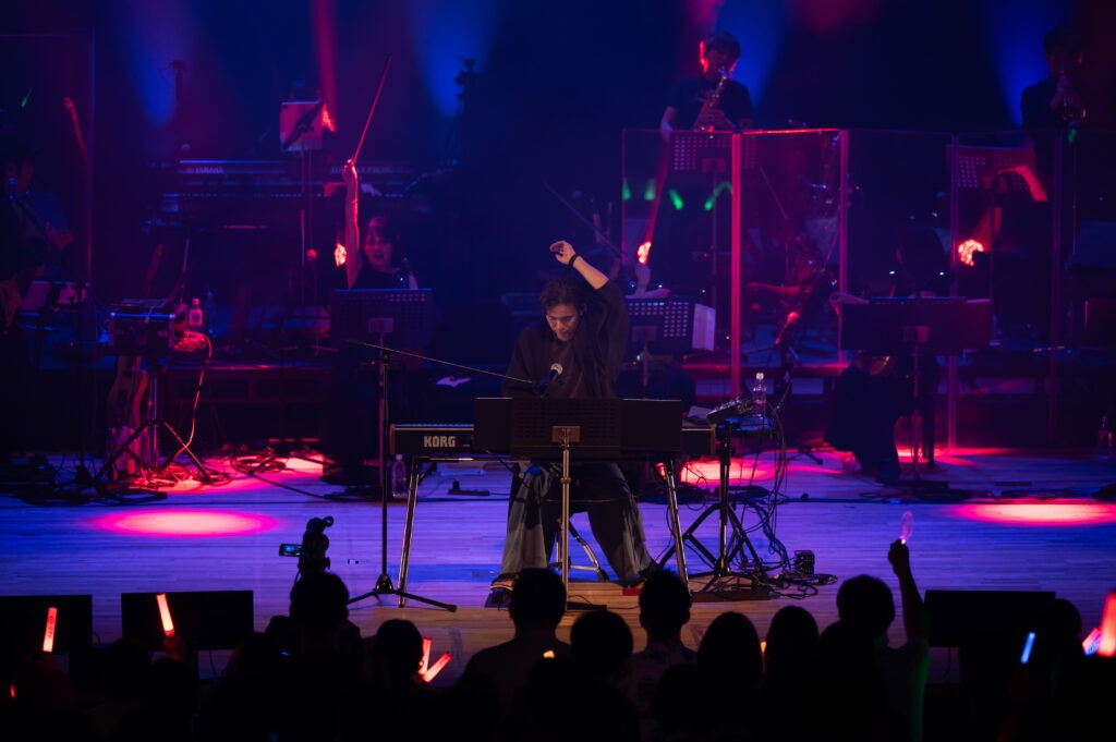 Ayasaさんも客席に降りて演奏し、ペンライトはオレンジを中心に、紫・赤・ピンクとさまざまな“推し色”が輝きました。演奏後、「(このイベントは)劇伴作家の“ごほうびタイム”だと思っております」と、曲名に掛けたコメントで笑いを誘いました。