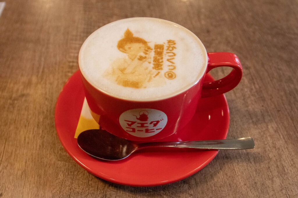 会場に隣接するカフェ、前田珈琲でも「ちかつくっ9」に合わせてコラボメニューが販売されました。筆者が注文したのは、イベントの名前と烏丸ミユがデザインされたラテアート。その他にも3種類の柄が用意されました。
