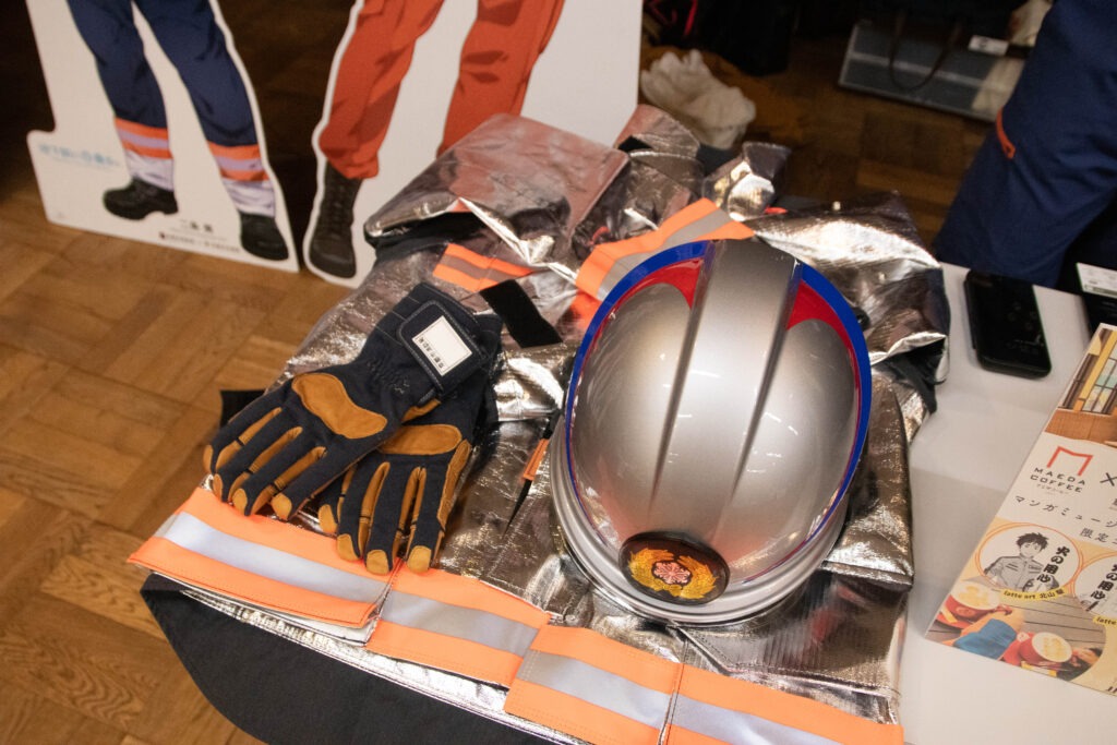 京都市消防局公式キャラクターに「北山駆」と「二条葵」がいる縁で、京都市消防局もイベントに参加しました。ブースでは、実際の防火服を着る体験ができます。