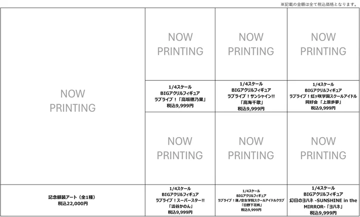 サンライズワールド「ラブライブ!シリーズ」フェアでは、描き下ろしのオリジナルキービジュアルを使用した新商品や、BDジャケットイラストなどを使用した新商品を販売いたします。さらに、物販 購入特典として、3,000円(税込)ご購入ごとに “描き下ろし複製ミニ色紙”がランダムで1枚プレゼントされます。