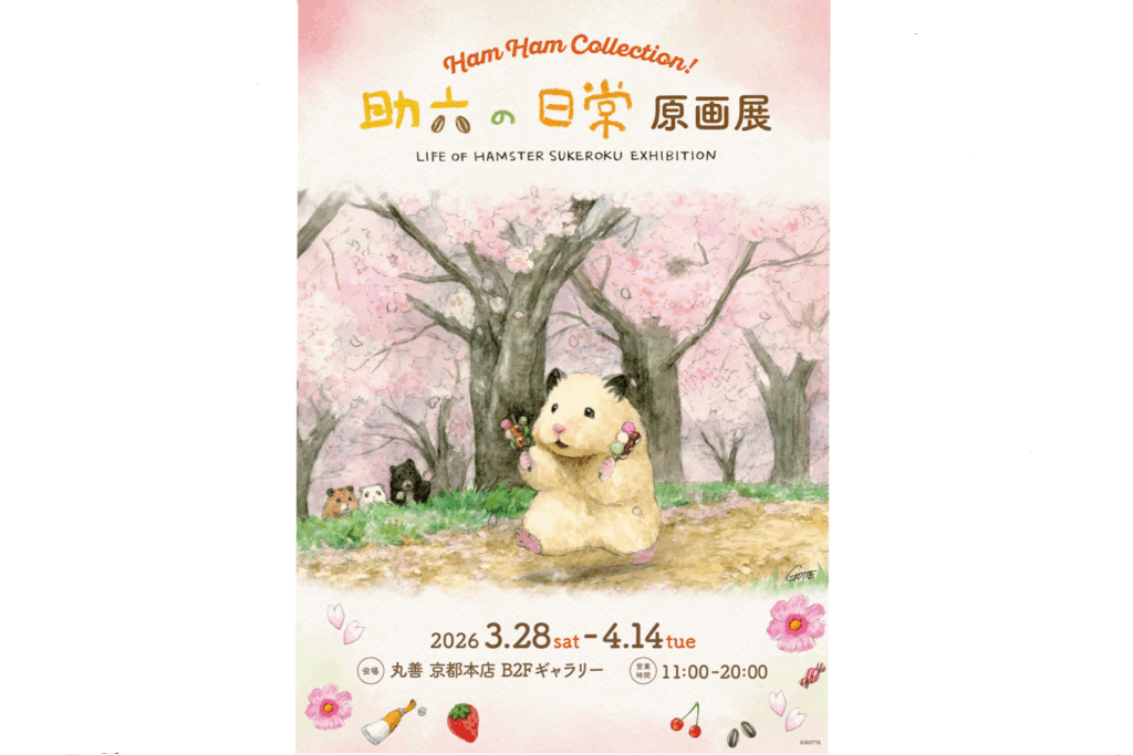 【京都コンテンツ関連情報】京都で開催!SNSで大人気「ハムスター助六の日常」原画展が丸善京都本店に登場!(開催期間:2026/4/14まで)