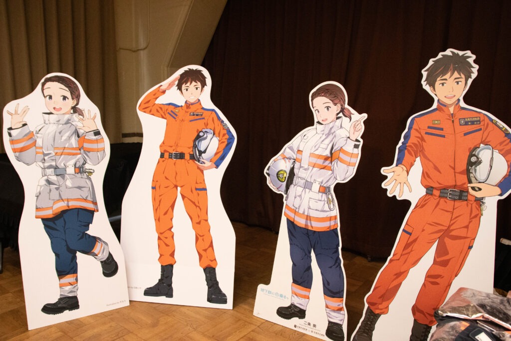 Since Kitayama Kakeru and Nijo Aoi are official characters for the Kyoto City Fire Department, the department joined the event! At their booth, you could try on actual bunker gear.